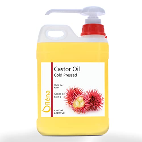 Oïléna - Huile de Ricin Pressée à Froid,Cheveux Brillants et Forts, Cils et Sourcils Épais, Barbe Dense, Ongles Renforcés – Hydratation Durable, Vergetures, Texture Dense, Massage, 100% Pure, 2000 ml