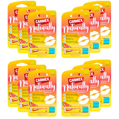 Carmex Naturally Stick Baume à lèvres hydratant et apaisant pour lèvres gercées, avec huile de ricin, vitamine E et cire d'abeille 12 x 4,25 g
