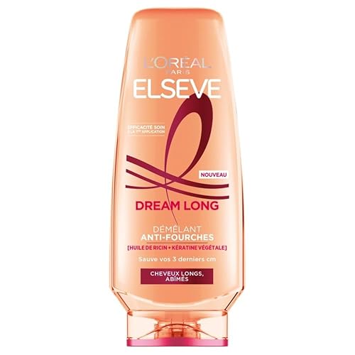 L'Oréal Paris - Après-Shampooing Démêlant Anti-Fourches - Pour Cheveux Long et Abîmés - Enrichi en Kératine Végétale et Huile de Ricin - Elseve Dream Long - 250 ml