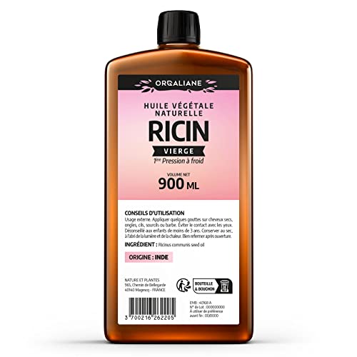 Huile de Ricin 900 ml - Orgaliane - Pure et Naturelle - Barbe, Cheveux, Cils, Ongles, Peau.