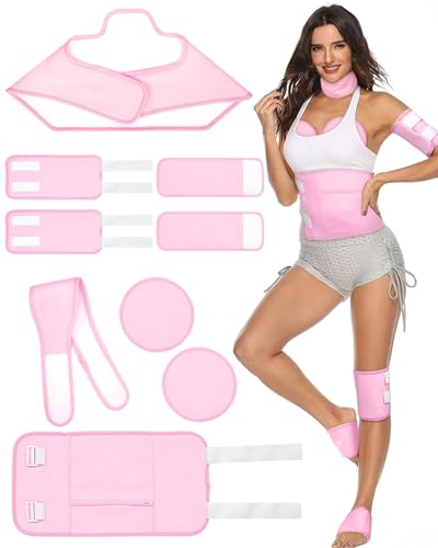 Kit de 9 emballages pour huile de ricin, Pack d'huile de ricin réutilisable biologique avec sangles ajustables pour le cou, les épaules, la poitrine, la taille, les genoux et les pieds, Pack d'huile