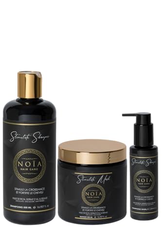 Coffret Prestige Capillaire GAMME STIMULATE - Trio Shampoing + Masque + Sérum + Brosse cheveux brushing offerte - HUILE DE RICIN - NOÏA HAIR