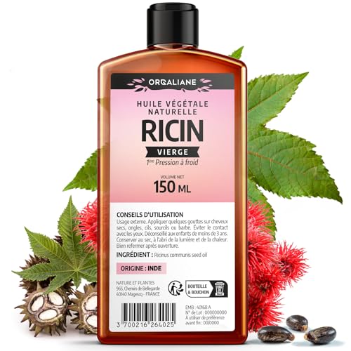 Huile de Ricin 150 ml - Orgaliane - Pure et Naturelle - Barbe, Cheveux, Cils, Ongles, Peau.