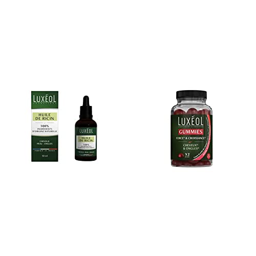 LUXÉOL - Huile De Ricin - Cheveux Ongles&Peau - Aide À Nourrir, Protèger & À Favoriser La Pousse Des Cheveux - 50ml & Gummies Force & Croissance - Complément Alimentaire Cheveux & Ongles - 60 Gummies