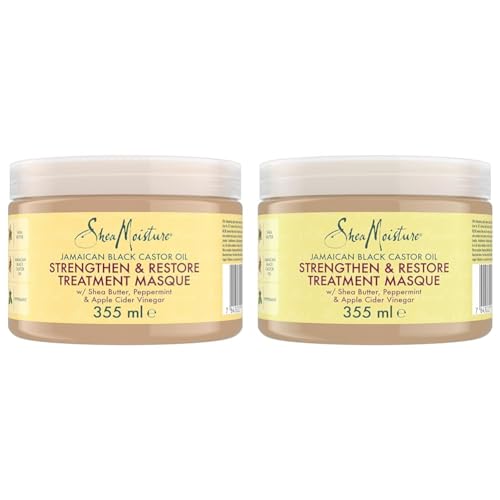 SheaMoisture Masque Fortifiant Huile de Ricin Noir de Jamaïque, pour cheveux abîmés et traités chimiquement, Fortifie et Restaure 355ml (Lot de 2)