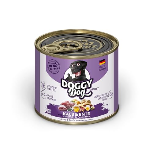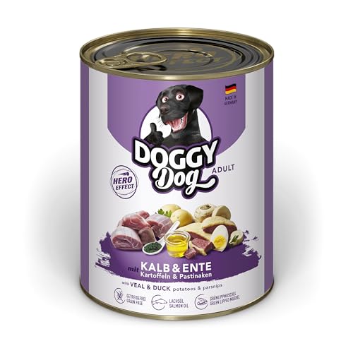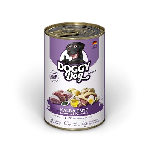 Doggy Dog Paté Veau et Canard, 6 x 400 g, Nourriture Humide pour Chien, sans céréales, avec Huile de Saumon et Moule aux orles Vertes, Aliment Complet avec Pommes de Terre et panais, fabriqué en