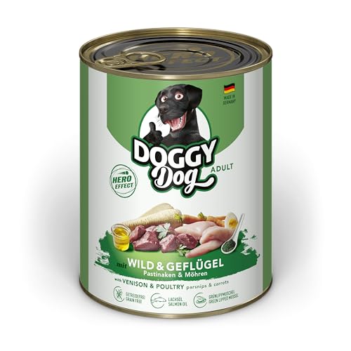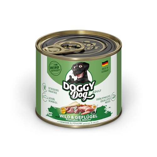 Doggy Dog Paté Wild & Volaille - 6 x 800 g - Nourriture Humide pour Chien - sans céréales - avec Huile de Saumon et Moule à lèvres Vertes - Aliment Complet avec panais et Carotte - Fabriqué en