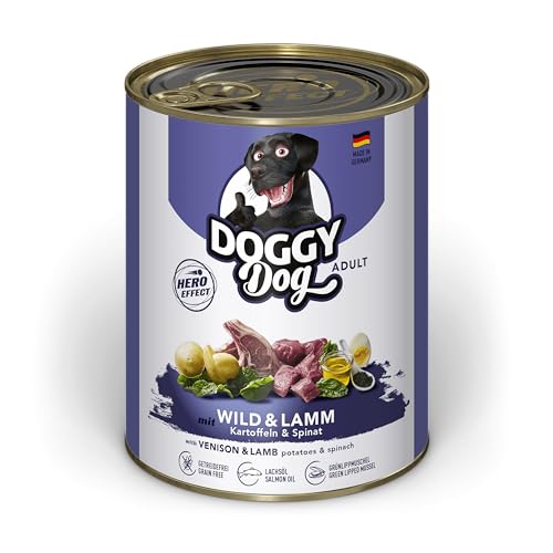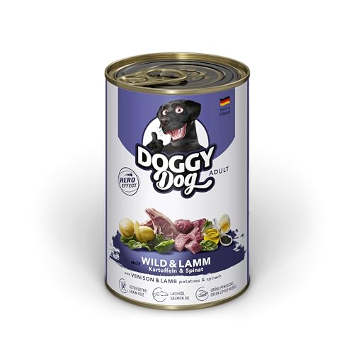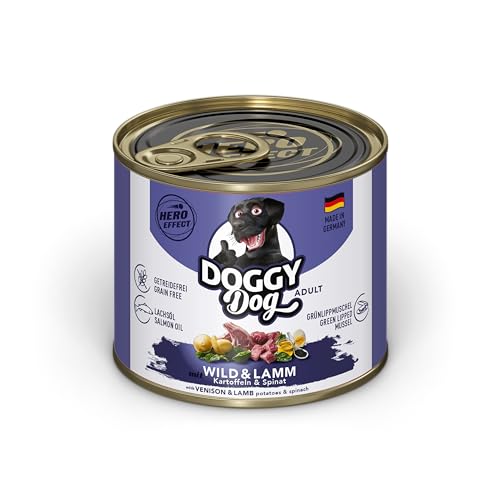 DOGGY Dog Paté Wild & Agneau - 6 x 400 g - Nourriture humide pour chien - Sans céréales - Avec huile de saumon et moule à lèvres vertes - Aliment complet avec épinards et pommes de terre - Fabriqué en