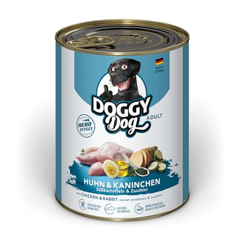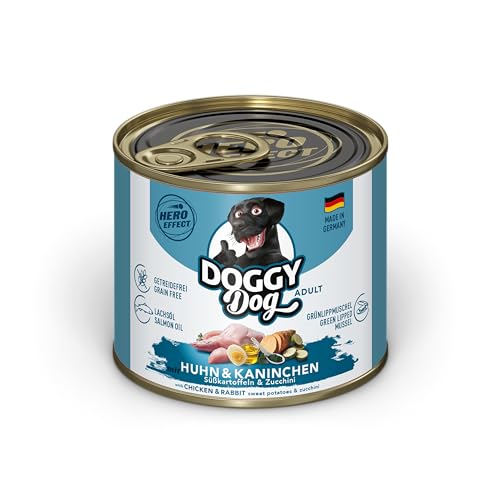 Doggy Dog Paté Poulet & Lapin, 6 x 800 g, Nourriture Humide pour Chien, sans céréales, avec Huile de Saumon et Moule aux orles Vertes, Aliment Complet avec patate Douce et courgettes, fabriqué en