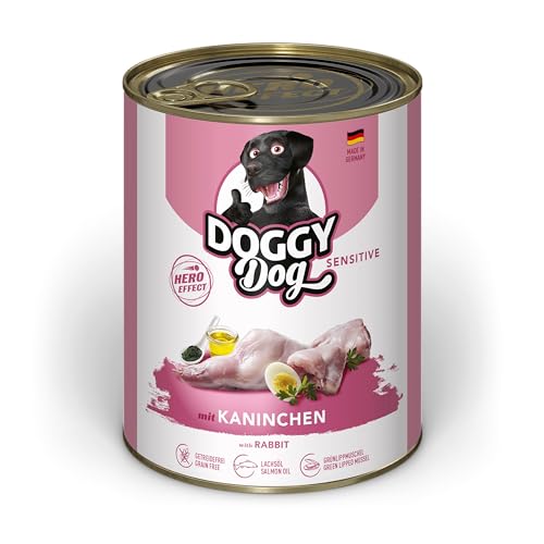 Doggy Dog Paté Kaninchen Sensitive, 6 x 400 g, Nourriture Humide pour Chien, sans céréales, avec Huile de Saumon et Moule aux orles Vertes, Aliment Complet particulièrement Bien toléré, fabriqué en