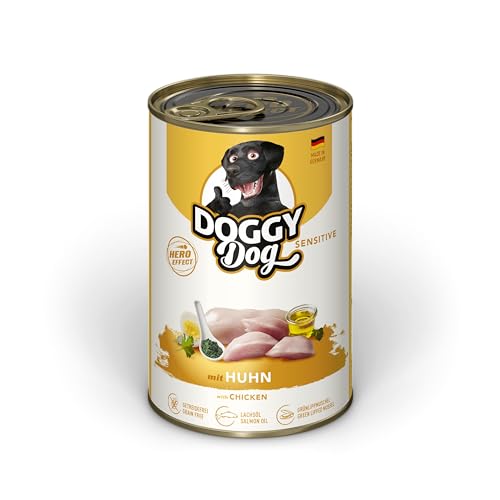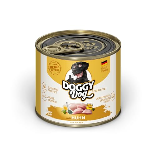 Doggy Dog Paté Huhn Sensitive Lot de 6 boîtes de 400 g de Nourriture Humide pour Chien sans céréales avec Huile de Saumon et Moule à lèvres Vertes, particulièrement Bien toléré, fabriqué en Allemagne