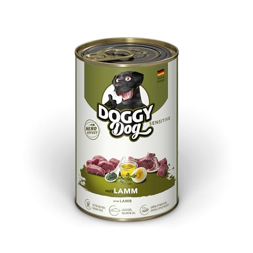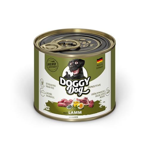 Doggy Dog Paté Agneau Sensitive, 6 x 800 g, Nourriture Humide pour Chien, sans céréales, avec Huile de Saumon et Moule à lèvres Vertes, Aliment Complet particulièrement Bien toléré, fabriqué en