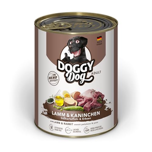 Doggy Dog Paté Agneau & Lapin, 6 x 800 g, Nourriture Humide pour Chien, sans céréales, avec Huile de Saumon et Moule à lèvres Vertes, Aliment Complet avec patate Douce et Pois, fabriqué en Allemagne
