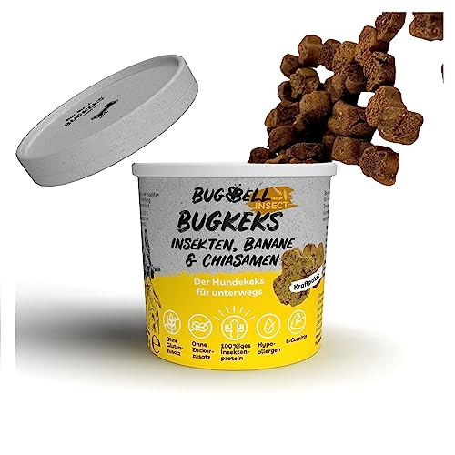 BugBell 8 x 150 g de Biscuits pour Chien, Biscuits sains pour Chien pour l'entraînement ou comme collation, friandises de récompense pour Chiens Actifs, Banane, chia, Huile de Saumon et L-carnitine