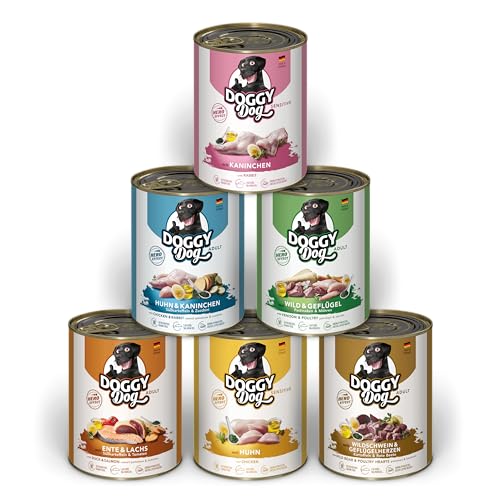 Doggy Dog Paté Mix Sensitive, 6 x 800 g, Nourriture Humide pour Chien, dans Un Paquet d'essai, sans céréales, avec Huile de Saumon et Moule à lèvres Vertes, particulièrement Bien toléré, fabriqué en