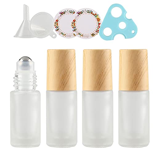 ZEOABSY Rechargeable 4 Pièce Mat Transparent Flacon Roll on Vide 5ml,Flacon Roll-on en Verre avec Bille en Acier Inoxydable,pour Huile Essentielle, Aromathérapie, Parfum, Massage,Laboratoire
