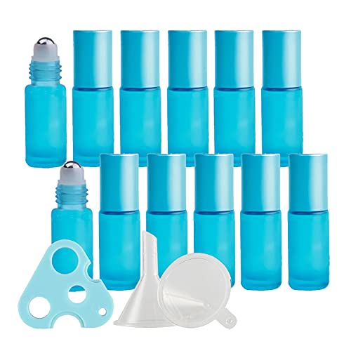 ZEOABSY Rechargeable 6 Pièce Mat Bleu Clair Flacon Roll-on Vide 5ml avec Bille en Acier Inoxydable, Bouchon à vis en Aluminium, pour Huile Essentielle, Aromathérapie, Parfum, Massage, Laboratoire