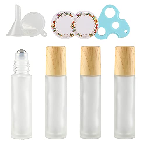 ZEOABSY Rechargeable 4 Pièce Mat Transparent Flacon Roll on Vide 10ml,Flacon Roll-on en Verre avec Bille en Acier Inoxydable,pour Huile Essentielle, Aromathérapie, Parfum, Massage,Laboratoire