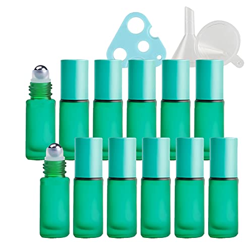 ZEOABSY Rechargeable 6 Pièce Mat Vert Flacon Roll-on Vide 5ml avec Bille en Acier Inoxydable, Bouchon à vis en Aluminium, pour Huile Essentielle, Aromathérapie, Parfum, Massage, Laboratoire