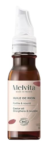 Melvita - Huile de Ricin - Pure et Vierge - Fortifie et Stimule la Pousse des Cils, Sourcils, Cheveux - Première Pression à Froid - Fabriqué en France - Flacon de 50 ml