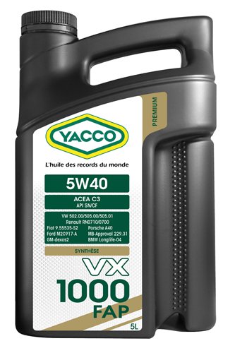 Huile Moteur Yacco 5W40 VX 1000 FAP - Bidon de 5 L