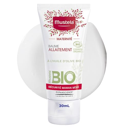 Mustela - Baume Allaitement à l'Huile d'Olive Bio - Protège le Mamelon pendant l'Allaitement - Soulage les Inconforts Pendant la Grossesse - 100% d'Ingrédients d'Origine Naturelle, Gamme Maternité Bio