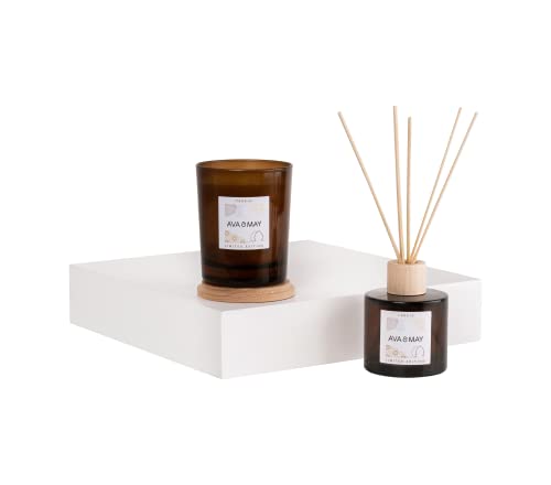 AVA & MAY Persia Home Fragrance - Set vegan avec bâtonnets parfumés et bougie parfumée - 1 diffuseur et 1 bougie à l'huile parfumée de qualité supérieure à base de figue, jasmin et néroli