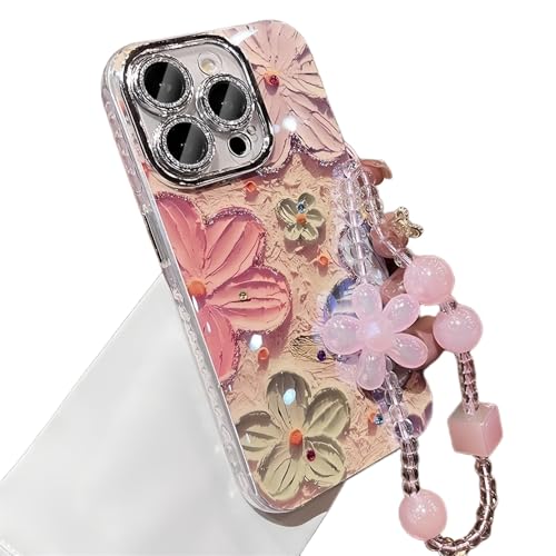 Rokmym Coque Compatible avec iPhone 13 Pro Max avec Perle Bracelet ,Coloré Vintage Peinture à l'huile Fleur Cas de Téléphone Case Antichoc Housse de Protection pour iPhone 13 Pro Max ,néroli