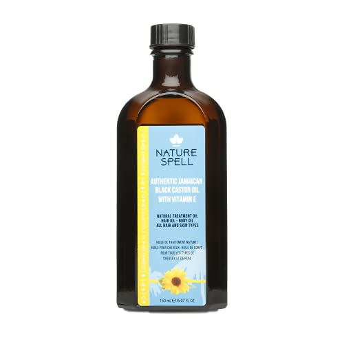 Nature Spell Authentique huile de ricin noire de Jamaïque avec vitamine E pour cheveux et corps 150 ml