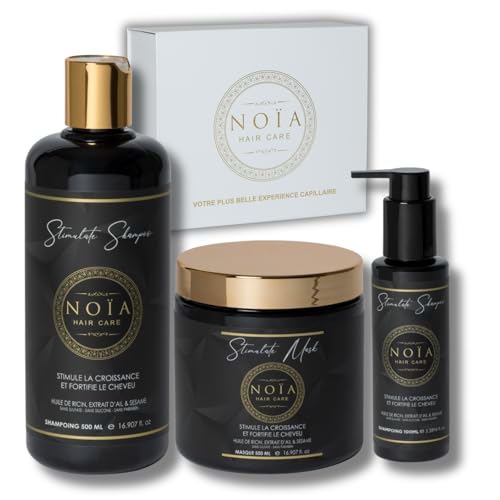 Coffret Prestige Capillaire GAMME STIMULATE - Trio Shampoing + Masque + Sérum + Brosse cheveux brushing offerte - HUILE DE RICIN - NOÏA HAIR