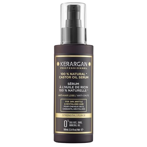 Kerargan - Sérum Capillaire Anti-Chute à l'Huile de Ricin - Protection & Brillance pour Cheveux Secs, Cassants - Enrichi en Aloe Vera & Huile de Macadamia - Sans sulfate, OGM, huile minérale - 100ml