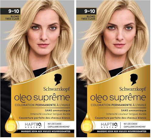 Oleo Suprême - Schwarzkopf – Coloration Permanente à l’Huile – Couleur et Eclat Longue Durée – sans Ammoniaque – Couvre 100% des Cheveux Blancs – HaptIQ Système – Blond Très Clair 9-10 (Lot de 2)