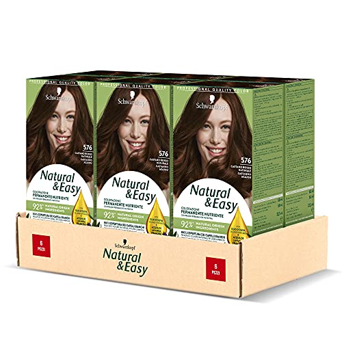 Schwarzkopf, Natural & Easy Colorant pour cheveux permanent, nourrissant avec de l'huile d'olive et de l'extrait de lavande, couverture de cheveux blancs, teinte 576 marron rouge naturel