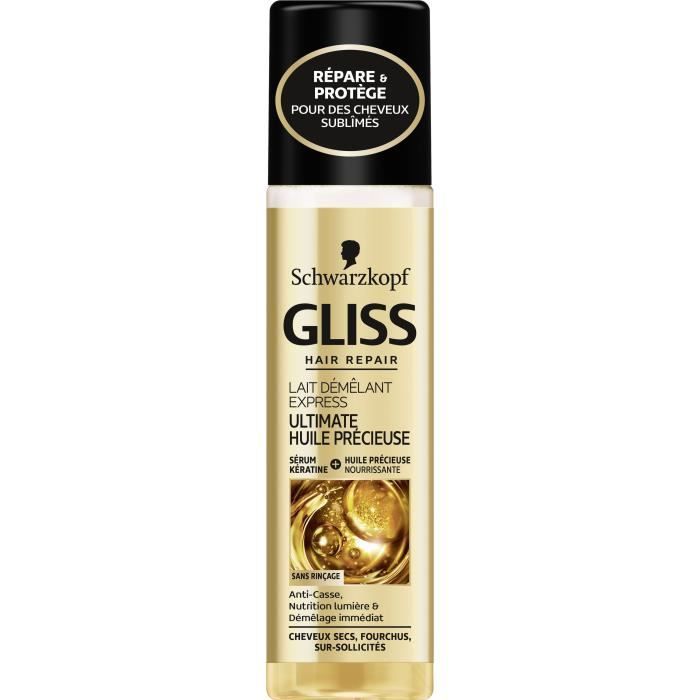 GLISS -Schwarzkopf - Lait Démêlant Express - Huile Précieuse - Nutrition - Protège jusqu'à 230°C - Démêle & Nourrit Intensément - Cheveux Sec & Rêche - Soin Normal - Sans Rinçage - 200ml