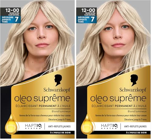 Schwarzkopf Oleo Suprême 12-00 Blond Ultra Clair Naturel – Éclaircissant Permanent à l’Huile, Sans Ammoniaque – Couleur & Éclat Longue Durée, Couvre 100% des Cheveux Blancs (Lot de 2)