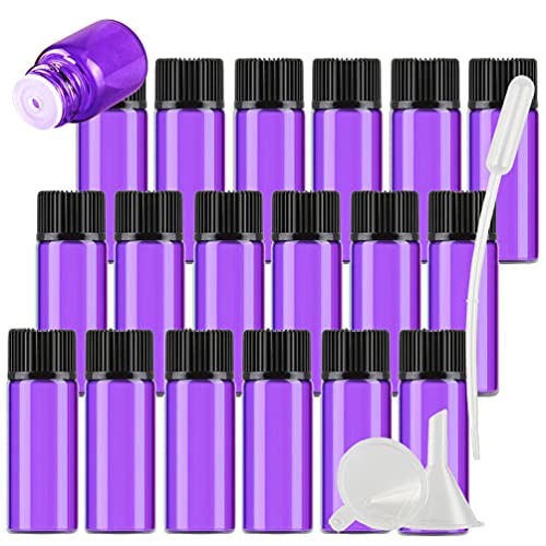 TIANZD 25 Pièces Mini 2ml Violet Bouteilles en Verre D'huile Essentielle avec Orifice Réducteur, Flacons en Verre Vides apour Huiles Essentielles Aromathérapie