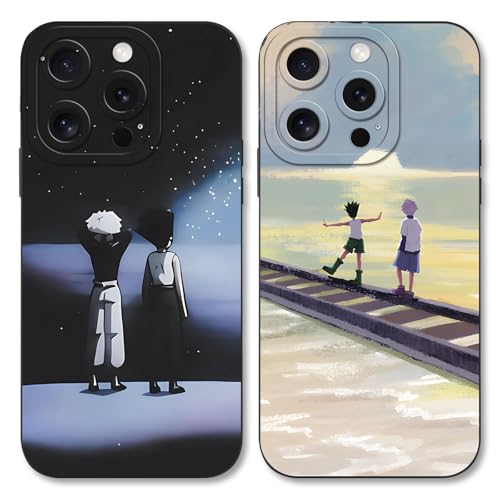 LunarDrift 2 Pièces Coque pour iPhone 16 Pro 6.3'', avec Anime Personnage Hunter×Hunter Gon Freecss Killua Manga Antichoc TPU Silicone Protective Objectif Caméra Housse Étui de Téléphone Case