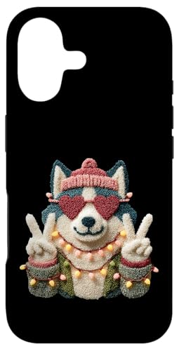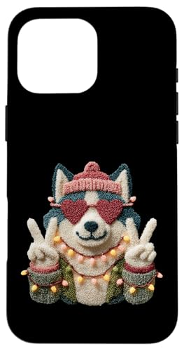 Mignon Chien Husky drôle Animal de Compagnie Design avec Lunettes Coeur Coque pour iPhone 16 Pro Max