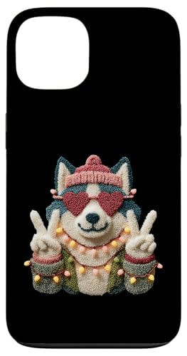 Mignon Chien Husky drôle Animal de Compagnie Design avec Lunettes Coeur Coque pour iPhone 13