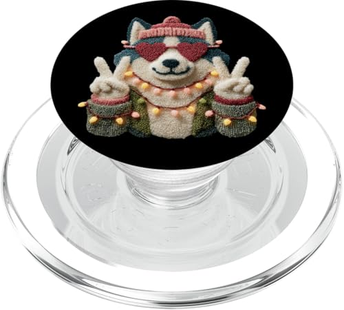 Mignon Chien Husky drôle Animal de Compagnie Design avec Lunettes Coeur PopSockets PopGrip pour MagSafe