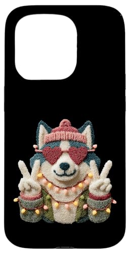 Mignon Chien Husky drôle Animal de Compagnie Design avec Lunettes Coeur Coque pour iPhone 15 Pro