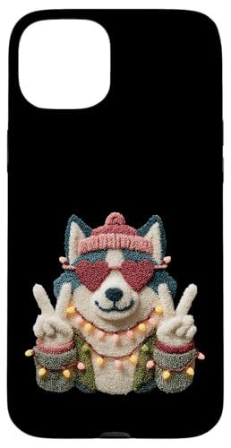 Mignon Chien Husky drôle Animal de Compagnie Design avec Lunettes Coeur Coque pour iPhone 15 Plus