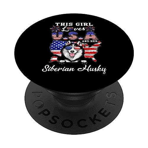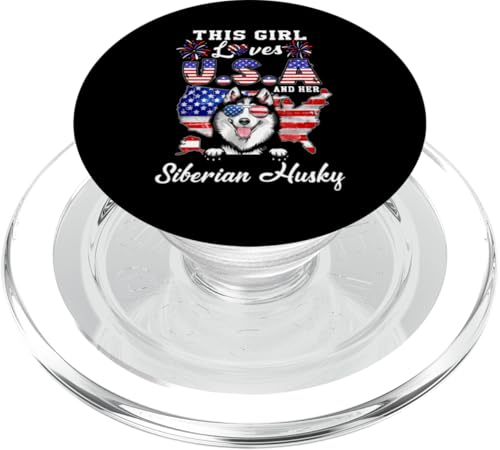 This Girl Loves USA and Her Dog 4th of July Siberian Husky PopSockets PopGrip pour MagSafe
