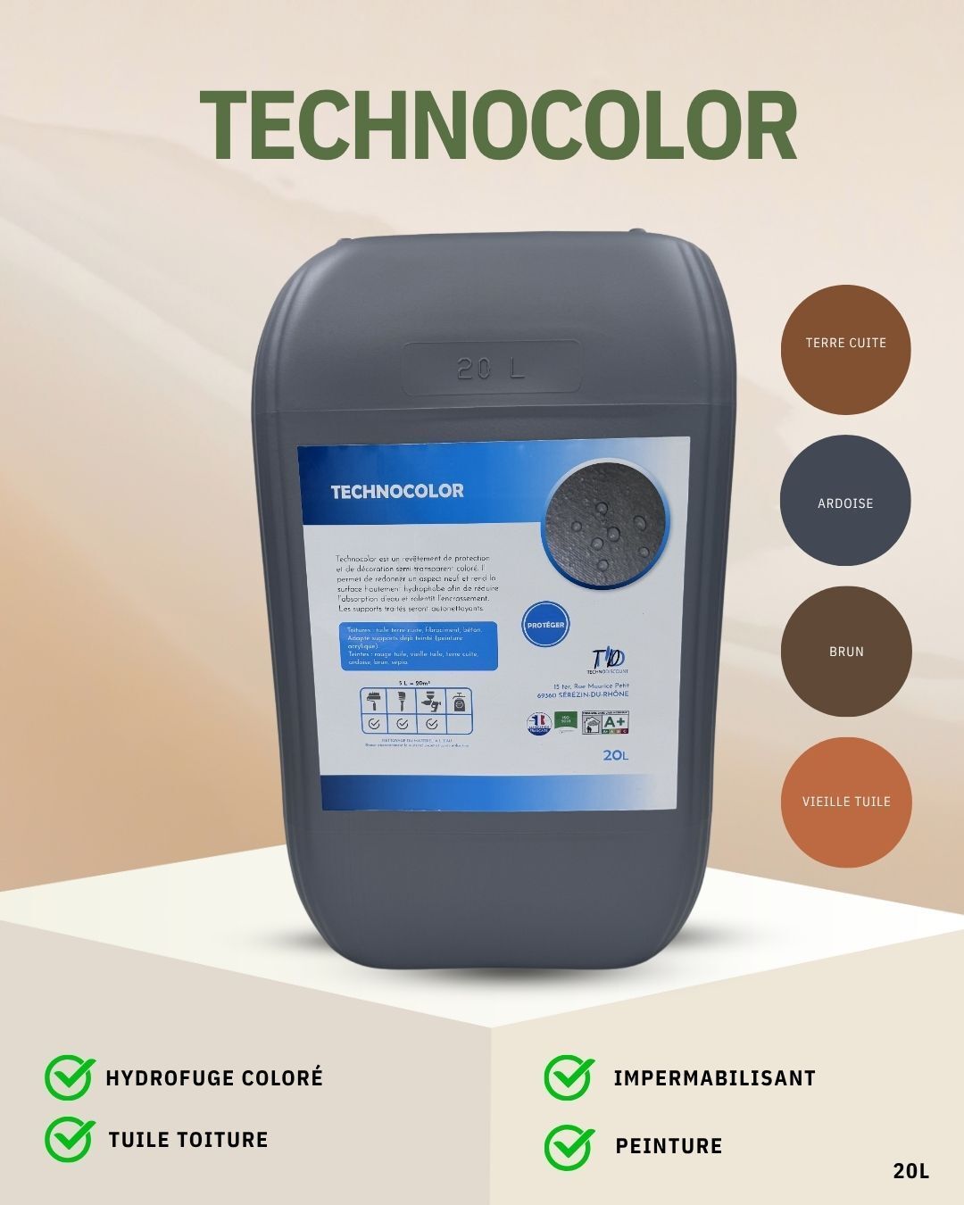 Hydrofuge coloré imperméabilisant toiture tuiles terre cuite béton ciment fibrociment ardoise hydrofuge teinté Tuile (ral 8004) 20 L (jusqu à 80m²)