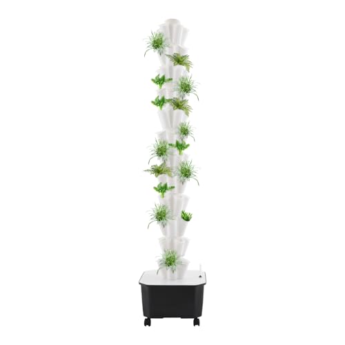Apriltop Tour de Culture Hydroponique avec 5 Roues, Réservoir d'eau de 45 litres et Jauge de Niveau d'eau, 10 Niveaux 50 Trous Système de Culture Hydroponique D'intérieur (Blanc)
