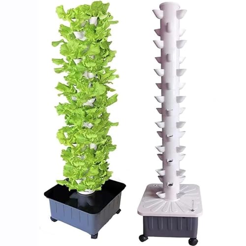 JJsdwin Hydroponics Kit de culture verticale hydroponique avec 4 roues et 56 paniers à plantes, système de germination vertical pour herbes, fruits et légumes, capacité du réservoir d'eau 30 l, blanc