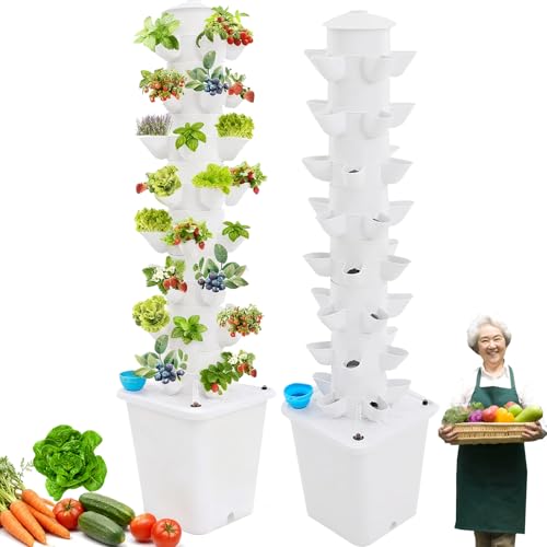 Aisny Système Hydroponique, 40 Trous Système Culture Hydroponique en Tour Tour Hydroponique Verticale à 8 Niveaux avec Réservoir d'eau 10L Pompe Indicateur Niveau d'eau Système Culture Hors-Sol