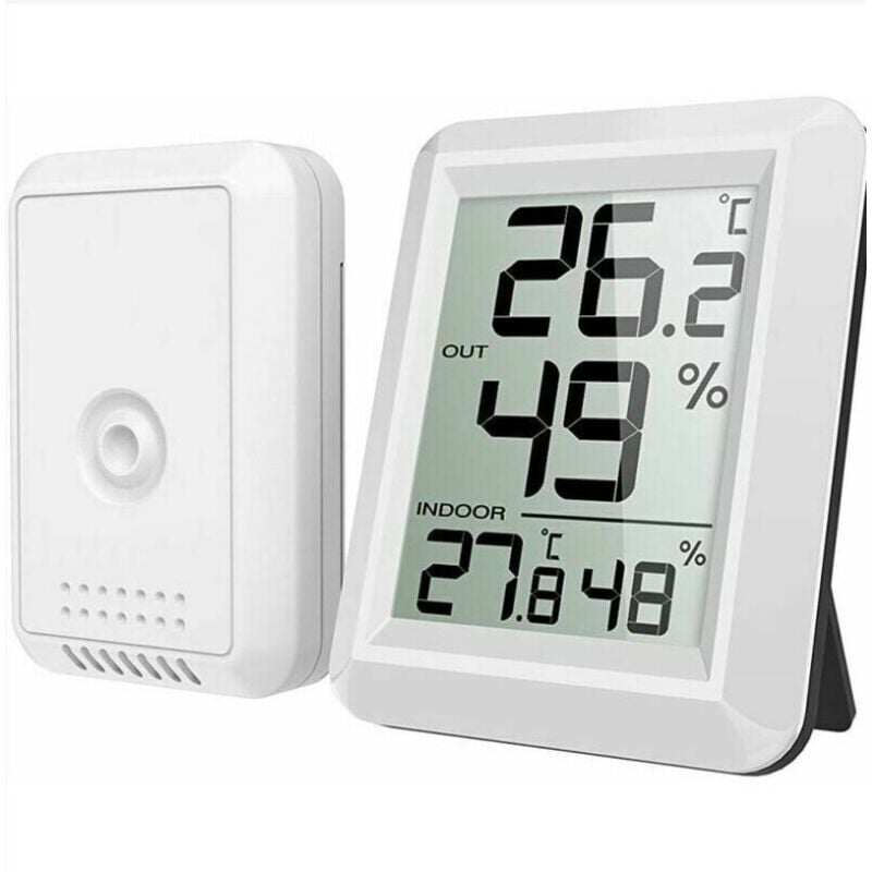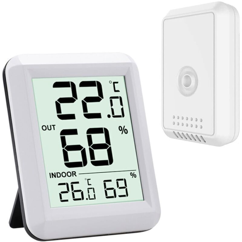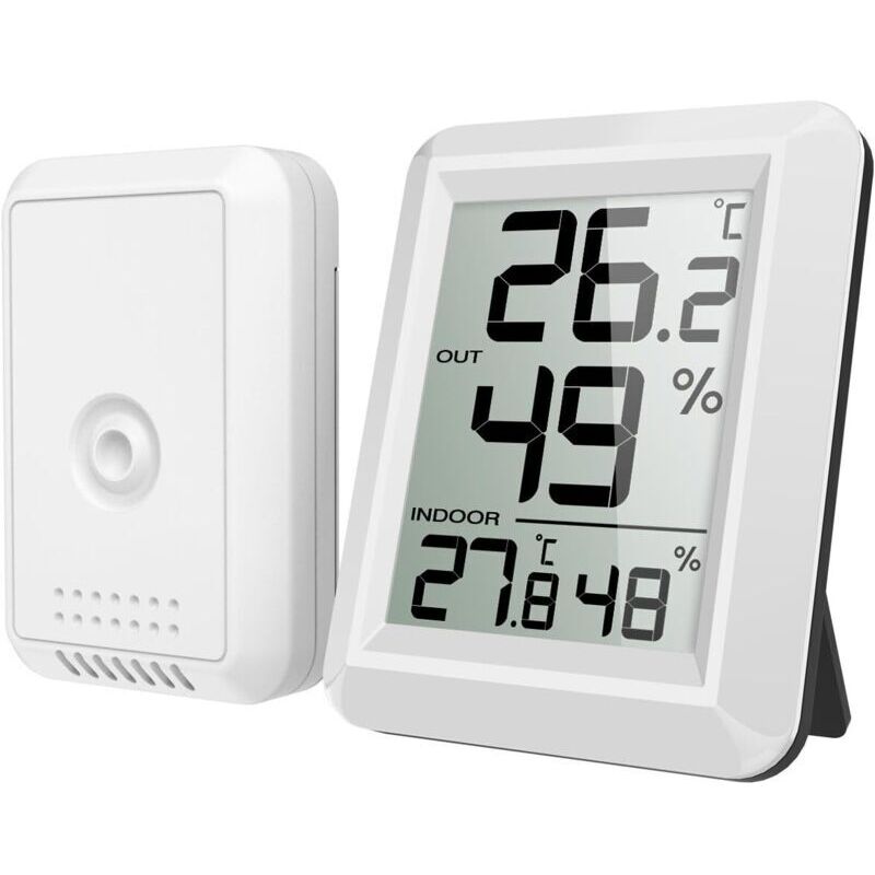 Thermomètre Connecté avec Capteur Extérieure sans Fil, Thermomètre Hygrometre Numérique avec Grand Ecran lcd, Commutateur ℃/℉, pour Bureau, Maison,