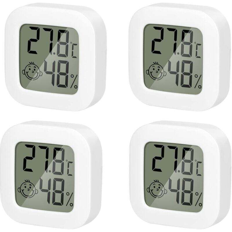 4 Pack Thermometre Interieur Mini lcd Thermomètre Hygrometre Haute Précision Température Hygromètre Moniteur avec Air icône Confortable pour Cuisine