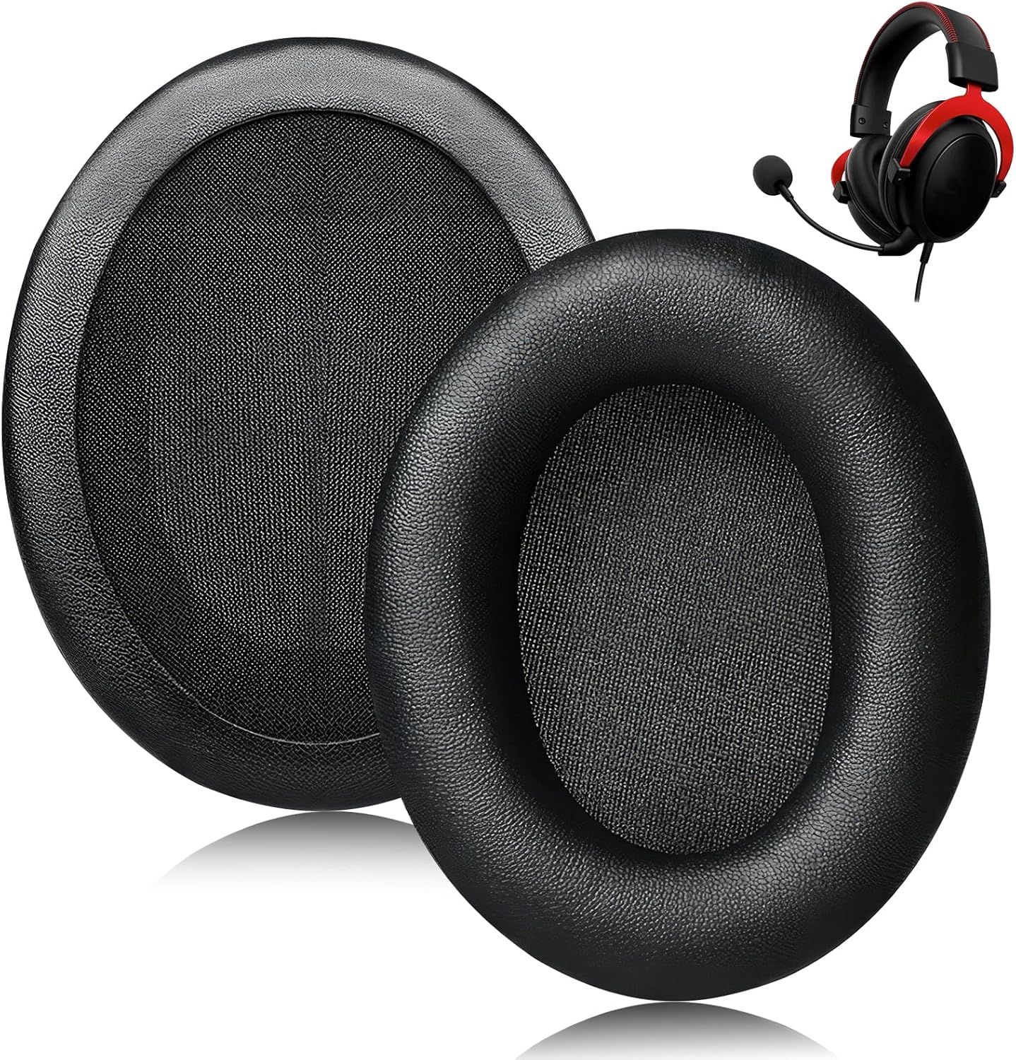 Aihoom 1pair Coussinets d'oreille de Rechange, en Cuir Protéiné, Casques, Accessoires pour Casque Audio, Compatible avec Kingston HyperX Cloud II/Cloud 2 / Cloud III/Cloud 3 (Noir)